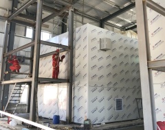 江蘇某工廠烘干房需要60-65度的熱風,烘干房連續24小時運行,考慮用谷電+光伏來儲熱、供熱,有同類廠家建議他用一臺固體電蓄熱熱水機組,然后用熱水換熱產熱風。我